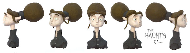 You can see her that I have left of any mouth details, as this blank face piece will be moulded and cast again and again in plasticine, on which I will sculpt the individual mouth shapes.